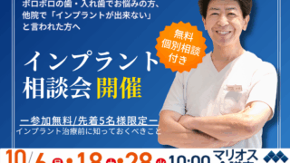 お知らせ 【参加無料】インプラント相談会開催【10/6(月)、10/18(土)、10/28(火)】 岩手県盛岡市の高橋衛歯科医院の院長、高橋衛です。「歯を失うことで将来どんなことが起こるのか」から始まり、インプラント治療の基本的なことから、4本のインプラントで全ての人工歯を支える画期的な最先端治療「オールオンフォー」の他、様々なケースのイ... 2025.10.01 お知らせ
