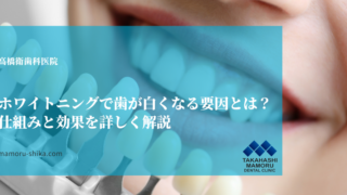 コラム ホワイトニングで歯が白くなる要因とは?仕組みと効果を詳しく解説 盛岡市にある歯医者・歯科、高橋衛歯科医院です。歯の黄ばみが気になり、人前で自信を持って笑えなくなっていませんか。白い歯は、清潔感のある第一印象を与え、ビジネスシーンでの信頼感やプライベートでの魅力アップにもつながります。近年、ホワイトニング... 2025.12.20 コラムスタッフブログ
