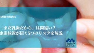 コラム 「まだ乳歯だから」は間違い?虫歯放置が招く5つのリスクを解説 盛岡市にある歯医者・歯科、高橋衛歯科医院です。お子さんの歯に小さな黒い点を見つけて、「これって虫歯かな?でも、乳歯はいずれ抜けるから大丈夫なのでは?」と、心配な気持ちと同時に疑問を感じている親御さんは少なくないでしょう。乳歯の虫歯に対するこ... 2026.01.17 コラムスタッフブログ