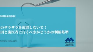 コラム 歯のザラザラを放置しないで!原因と歯医者に行くべきかどうかの判断基準 盛岡市にある歯医者・歯科、高橋衛歯科医院です。舌で歯を触ったときに感じるザラザラとした不快感は、毎日の食事や会話の中でふとした瞬間に気になり、気分が落ち込んでしまうことも少なくありません。このザラザラ感は、単なる一時的なものではなく、お口か... 2026.03.21 コラムスタッフブログ