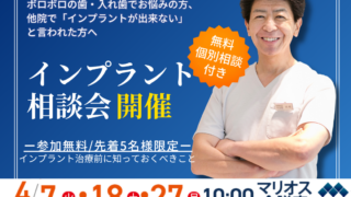 お知らせ 【参加無料】インプラント相談会開催【4/7(火)、4/18(土)、4/27(月)】 岩手県盛岡市のマモインプラントクリニックマリオスの院長、高橋衛です。「歯を失うことで将来どんなことが起こるのか」から始まり、インプラント治療の基本的なことから、4本のインプラントで全ての人工歯を支える画期的な最先端治療「オールオンフォー」の... 2026.04.02 お知らせ