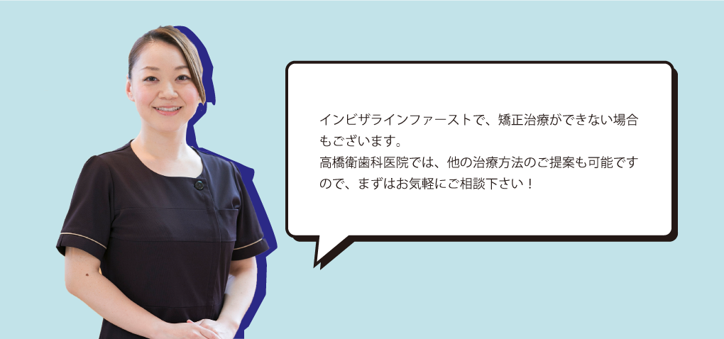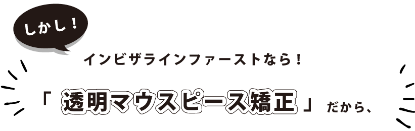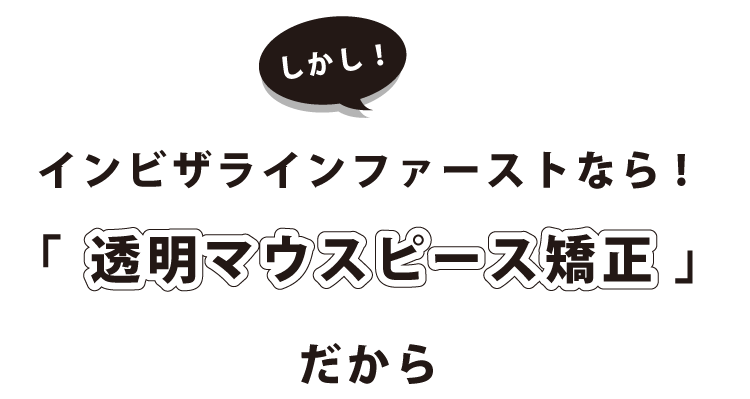 インビザライン ファーストで使用する矯正装置は、透明マウスピースで すので、矯正していることを周りに気づかれにくいことが大きな特徴です。
