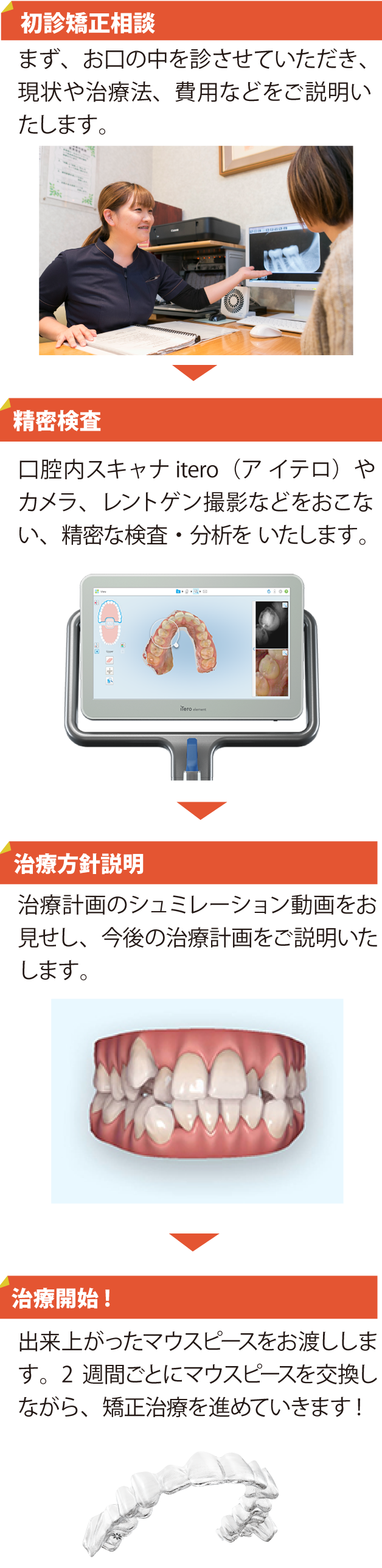 口腔内スキャナー「itero(アイテロ)」でスキャンした 3D の歯型データを元に、治療開始から終了まで、独自のシステムで細かいシュミレーションを行いながら治療を進めていきます。
